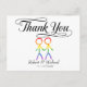 Esta tarjeta de agradecimiento presenta un diseño hermoso y sincero para mostrar su aprecio por sus seres queridos. El gráfico representa a dos hombres, en forma de elegantes figuras de palos, tomados de la mano. Las figuras están coloreadas en un hermoso arco iris, simbolizando el amor y la diversidad. Esta tarjeta es una manera maravillosa de expresar tu gratitud y celebrar tu historia de amor con cada detalle de tu día especial.