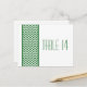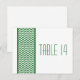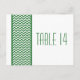 Postal con número de tabla de borde Chevron y moda moderna con un sencillo borde de patrón de chevron en verde oscuro y blanco. Este diseño elegante marcará el tono de una boda elegante. Fácil de personalizar, simplemente agregue los números de tabla apropiados en el campo de texto proporcionado. Haga clic en "Personalizar" para encontrar más opciones de personalización.