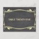Elegante y a la moda Flourish Chalkboard Table Number Postcard con un toque de pizarra y un elegante borde de estilo Art Déco con flores en amarillo. Fácil de personalizar, simplemente agregue los números de tabla apropiados en el campo de texto proporcionado. Haga clic en "Personalizar" para encontrar más opciones de personalización.