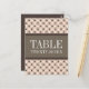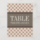 Postal con número de tabla de moda Fancy Lattice, de moda y de moda, con un elegante círculo y un patrón de rombo sobre un vibrante fondo de melocotón con un amplio borde marrón de dos tonos. Esta elegante tarjeta de mesa es perfecta para un boda moderno. Fácil de personalizar, simplemente agregue los números de tabla apropiados en el campo de texto proporcionado. Haga clic en "Personalizar" para encontrar más opciones de personalización.