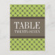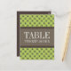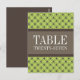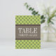Tabla de Fancy Lattice Número Postcard a la moda y de moda con un diseño elegante de círculo y rayado de diamantes sobre una vibrante tira de fondo verde con un amplio borde marrón de dos tonalidades. Esta elegante tarjeta de mesa es perfecta para un boda moderno. Fácil de personalizar, simplemente agregue los números de tabla apropiados en el campo de texto proporcionado. Haga clic en "Personalizar" para encontrar más opciones de personalización.