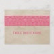 Postal Rústica simple y elegante con un fondo de papel texturado vintage y un borde de encaje dulce y delgado en magenta. Fácil de personalizar, simplemente agregue los números de tabla apropiados en el campo de texto proporcionado. Haga clic en "Personalizar" para encontrar más opciones de personalización.