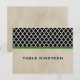 Elegante y moderna Moda Quatrefoil Boda Número de tabla postal con un fondo marrón a la moda, un fondo de papel vintage y un par de delgadas rayas verdes. Esta elegante tarjeta de tabla es fácil de personalizar, simplemente agregue los números de tabla apropiados. Haga clic en "Personalizar" para encontrar más opciones de personalización.