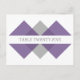 Postal con número de tabla de Boda geométrico moderno y de moda con un diseño triangular elegante en color morado y gris. De fácil personalizar, este diseño sencillo pero elegante se puede personalizar añadiendo los números de tabla correspondientes en el campo de texto proporcionado. Haga clic en "Personalizar" para encontrar más opciones de personalización.