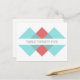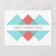 Postal con número de tabla de Boda geométrico moderno y de moda con un diseño triangular elegante en color turquesa y rojo. De fácil personalizar, este diseño sencillo pero elegante se puede personalizar añadiendo los números de tabla correspondientes en el campo de texto proporcionado. Haga clic en "Personalizar" para encontrar más opciones de personalización.