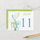 Esta postal de número de la mesa floral verde lima reversible, azul acuático y blanco coincide con la invitación de boda que se muestra a continuación. **Debe cambiar el número 11 a cada uno de los números de tabla que necesite, agregarlo a su carrito y, a continuación, devolver y repetir el proceso hasta que tenga todas las tarjetas numeradas individualmente que necesite en su carrito. Ponlo sobre un pequeño caballete, o en sus piezas centrales. Si necesita ayuda, envíe un correo electrónico a niteowlstudio@gmail.com.