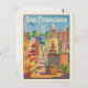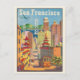 Postcard con impresiones vintage de San Francisco anunciando el mejor destino californiano. Esta versión con marco negro interior. Por favor, avísenos si desea que se hagan algunos cambios que le gusten. Estamos encantados de ayudarle si necesita algún cambio en la disposición, como colores, tonos, tamaño o cualquier otra adición, como su propio texto único. Contáctenos y haremos el resto para su satisfacción personal.