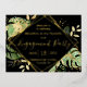 Esta elegante y moderna postal del Relieve metalizado de oro tropical "Engagement Party" es una manera fácil de invitar a amigos y familiares para celebrar su compromiso. "Partido de compromiso" junto con los nombres, fecha y ubicación de la pareja aparecen en el frente en el color de Relieve metalizado de su elección. El texto está resaltado por un marco estropeado. Las hojas tropicales, el follaje y los helechos alcanzan su pico por detrás del marco sobre un fondo negro. Las salpicaduras de Relieve metalizado dorado le dan un toque sofisticado de luminosidad al diseño. La parte trasera de la postal tiene los detalles de la fiesta de compromiso en negro.