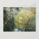 Una postal con una casa idílica enclavada en un follaje colorido de otoño.