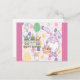 ¡Desee a su familia y amigos una feliz Pascua con esta linda postal rosa que incluye un gnomo con orejas de conejo!