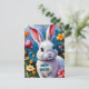 Esta deliciosa postal cuenta con una encantadora escena primaveral con un conejo blanco adorable enclavado en una vibrante variedad de flores. La pintura es muy compleja y captura la esencia de la temporada, con delicadas pinceladas que le dan vida a la encantadora escena. Perfecto para enviar cálidos deseos y alegrar el día de alguien.