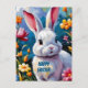 Postal Conejo blanco adorable rodeado de flores vibrantes