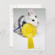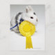 Conejo blanco y negro con correa azul con rosetón amarillo | Michael Blann | AssetID: 200358980-001