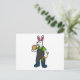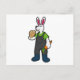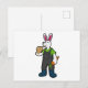 Postal Conejo como granjero con zanahoria y sombrero