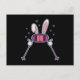 Postal Conejo de esquí con bastones de esquí y gafas de e