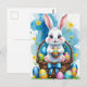 Postal Conejo de Pascua con huevos