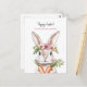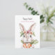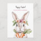 Conejo de Pascua con postal de zanahorias. Maravillosos colores primaverales en tonos rosa pastel, naranja y marrón, diseño floral acuarela y un conejito de bonito super lindo con dos zanahorias naranjas. Texto personalizado con un precioso guión de moda.