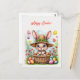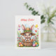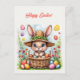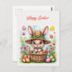Postal Conejo de Pascua en una canasta de huevos pintados