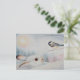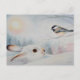 Postal Conejo de raquetas de nieve y acuarela de pájaro