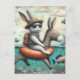 Postal Conejo en un burro flotando arte digital