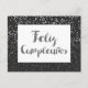 Postal Confetti plateado y Purpurina Feliz Cumpleanos