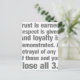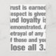 Se gana confianza, se respeta y se demuestra lealtad. Traición de cualquiera de esos y pierdes los 3.