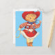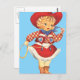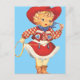 Adorable personalizado vintage de una niña rubia vestida de vaquera roja