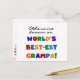 Las mejores camisetas Grampa, caramelos, tazas, tarjetas, pegatinas, agujeros, imanes y otras prendas de grampa y regalos con un texto brillante que dice "¡También conocido como el mejor Grampa del mundo!".