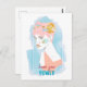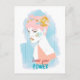 Fuertes palabras de aliento para enviar, la cita Conoce tu Poder junto con el ilustracion de una cara femenina de moda con el pelo rosado y contra un lavado de fondo de azul claro.