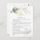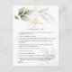 La tarjeta de consejos para la futura novia cuenta con una ilustración de acuarela de follaje verde y dorado con confeti de efecto dorado.