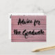 Moderno y rústico fondo de grano de madera rosada. Tarjetas de consejo para la fiesta de graduación que se ofrece a sus invitados. Pide a los invitados que escriban sus palabras de felicitación, sus palabras de sabiduría y sus consejos para la graduación. Texto negro sobre el trazo del pincel. Monograma con nombre de graduados. Cree una tarjeta de graduación de mantenimiento de memoria.