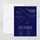 Constelación zodiacal de Géminis o gemelos. El color de las estrellas es aproximadamente real. Nombres de estrellas y objetos espaciales. Géminis es una de las constelaciones del zodiaco, el sol la transita a lo largo de la línea de la Eclíptica entre el 21 de mayo y el 20 de junio aproximadamente. En la mitología griega clásica, los gemelos - Cástor y Pólux compartían la misma madre, Leda, pero tenían padres diferentes. El padre de Pólux era el dios Zeus, lo que hacía a Pólux inmortal, mientras que Cástor era mortal. Su hermana era Helena de Troya, por lo que lucharon en la Guerra de Troya. Cuando el mortal Cástor fue asesinado, Pólux le pidió a Zeus que le permitiera compartir su propia inmortalidad con su hermano gemelo para mantenerlos juntos, y fueron transformados en la constelación de Géminis. Tarjeta postal de felicitación de cumpleaños única, elegante y personalizable para cualquier persona. Puedes cambiar la imagen y la plantilla del texto "¡Feliz cumpleaños, Christopher!". Puedes transferir este diseño a una variedad de otros productos. No olvides usar el botón "Personalizar" o "Editar diseño", o el enlace azul "Detalles" --> "Haz clic para personalizar aún más" --> "Rellenar/Ajustar" para AJ