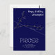 Constelación Zodiacal Piscis o peces. El color de las estrellas es aproximadamente real. Nombres de estrellas y objetos espaciales. Según las antiguas leyendas griegas y babilónicas, Piscis - los peces - representa dos peces unidos por una cuerda. El nudo de la cuerda es Alpha Piscium - Alrescha (“la cuerda” en árabe). En la mitología romana, la constelación representa a Venus y Cupido, que se transformaron en peces para escapar del monstruo Tifón. Piscis es la constelación del Zodiaco. El Sol transita por el área a lo largo de la línea de la Eclíptica entre el 18 de febrero y el 20 de marzo. Tarjeta de felicitación de cumpleaños única, elegante, divertida para cualquier persona. Personalizable. Puedes cambiar la imagen y el texto del modelo "Feliz cumpleaños, Christopher!". Puedes transferir este diseño a una variedad de otros productos. Solo elige el producto desde la opción desplazable "Transferir diseño a un producto". No te olvides de usar el botón "Personalizar", o "Editar diseño", o el enlace azul "Detalles" --> "Haga clic para personalizar aún más" --> "Rellenar/Ajustar" para AJUSTAR EL DISEÑO AL TAMAÑO Y FORMA del producto, para rotarlo, cambiar la