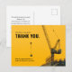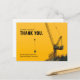 Una tarjeta de agradecimiento minimalista con tema de equipo de construcción que presenta un diseño monocromo simple en negro y amarillo. Cuenta con una grúa de construcción silueteada hacia el primer plano con un simple agradecimiento hacia un lado. En el interior hay un área adicional para su propio mensaje de agradecimiento específico a su equipo de construcción e ingeniería o clientes.