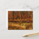 Esta postal presenta a un niño con una chaqueta rosa en un banco contemplando las reflexiones del estanque en un día fresco en otoño. Los bosques circundantes exhiben brillantes tonos otoñales de rojo, naranja, amarillo y marrón.