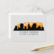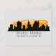 Elegante postal presenta la silueta de la ciudad de Atlanta Georgia con salpicadura de color de agua con puesta de sol y coordenadas de mapa de latitud y longitud