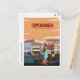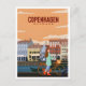 vintage, retro, travel, moderno, acuarela, clásico, Copenhague, Dinamarca, ciudad, europa,