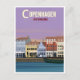vintage, retro, travel, moderno, acuarela, clásico, Copenhague, Dinamarca, ciudad, europa,