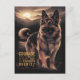 Un perro pastor alemán se erige orgullosamente en un telón de fondo de montañas al amanecer. El sol se levanta detrás del perro, arroja un cálido resplandor sobre su piel. El perro está mirando directamente al espectador, con una expresión determinada en su cara. Debajo del perro hay una cita sobre el coraje.