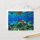 Nadando con las exóticas tortugas tropicales. Vibrante foto de una toma de buceo justo debajo de la superficie de las aguas azules tropicales del mar. Al observar a las tortugas marinas nadar alrededor de la barrera de coral con pequeños peces tropicales de colores en las cercanías. Las tortugas marinas pueden vivir hasta 100 años, aguantar la respiración bajo el agua hasta 5 horas cada vez, comer medusas y pueden pesar hasta 2.000 LBS.