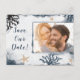 Postal Coral Náutico Azul Acuarela Playa Guardar la Fecha