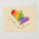 Este diseño dulce y romántico presenta dos corazones en colores arcoiris con las palabras "unidos en el amor".