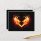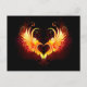 Ángel dispara el corazón con las alas flameantes sobre fondo negro.
