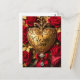Postal Corazón Dorado Lujoso con Rosas Rojas y Cinta
