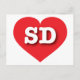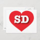 Esta postal presenta un vibrante corazón rojo que contiene las letras en negrita, blancas y altas del funda SD, la abreviatura oficial de Dakota del Sur, el estado del Monte Rushmore. El reverso de la postal está en blanco, esperando el texto personalizado o los sentimientos escritos a mano.