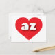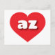 Esta postal presenta un vibrante corazón rojo que contiene letras fundas más bajas, redondeadas, blancas y negritas, una versión divertida de la abreviatura de Arizona, el estado del Gran Cañón. El reverso de la postal está en blanco esperando tus sentimientos escritos a mano o texto personalizado.