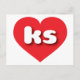 Esta postal tiene un vibrante corazón rojo que contiene las letras negrita, blanca, redondeadas de funda inferior, una abreviatura juguetona para el estado de Kansas, el estado de los girasoles. El lado inverso de la postal está en blanco, a la espera de tus sentimientos escritos a mano o de tu texto personalizado.
