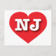 Esta postal tiene un vibrante corazón rojo que contiene las letras negrita, blanca y alta del funda NJ, la abreviatura oficial del estado de Nueva Jersey, el estado del jardín.