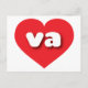 Esta postal presenta un vibrante corazón rojo que contiene las negritas, blancas, redondeadas letras minúsculas va, una divertida abreviatura del estado de Virginia, el estado del viejo dominio.