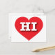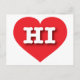 Esta tarjeta postal contiene un vibrante corazón rojo que contiene las letras atrevidas, blancas y altas del funda HI, la abreviatura oficial de Hawaii, el estado de aloha. El reverso de la tarjeta está en blanco, esperando tus sentimientos escritos a mano o texto personalizado.